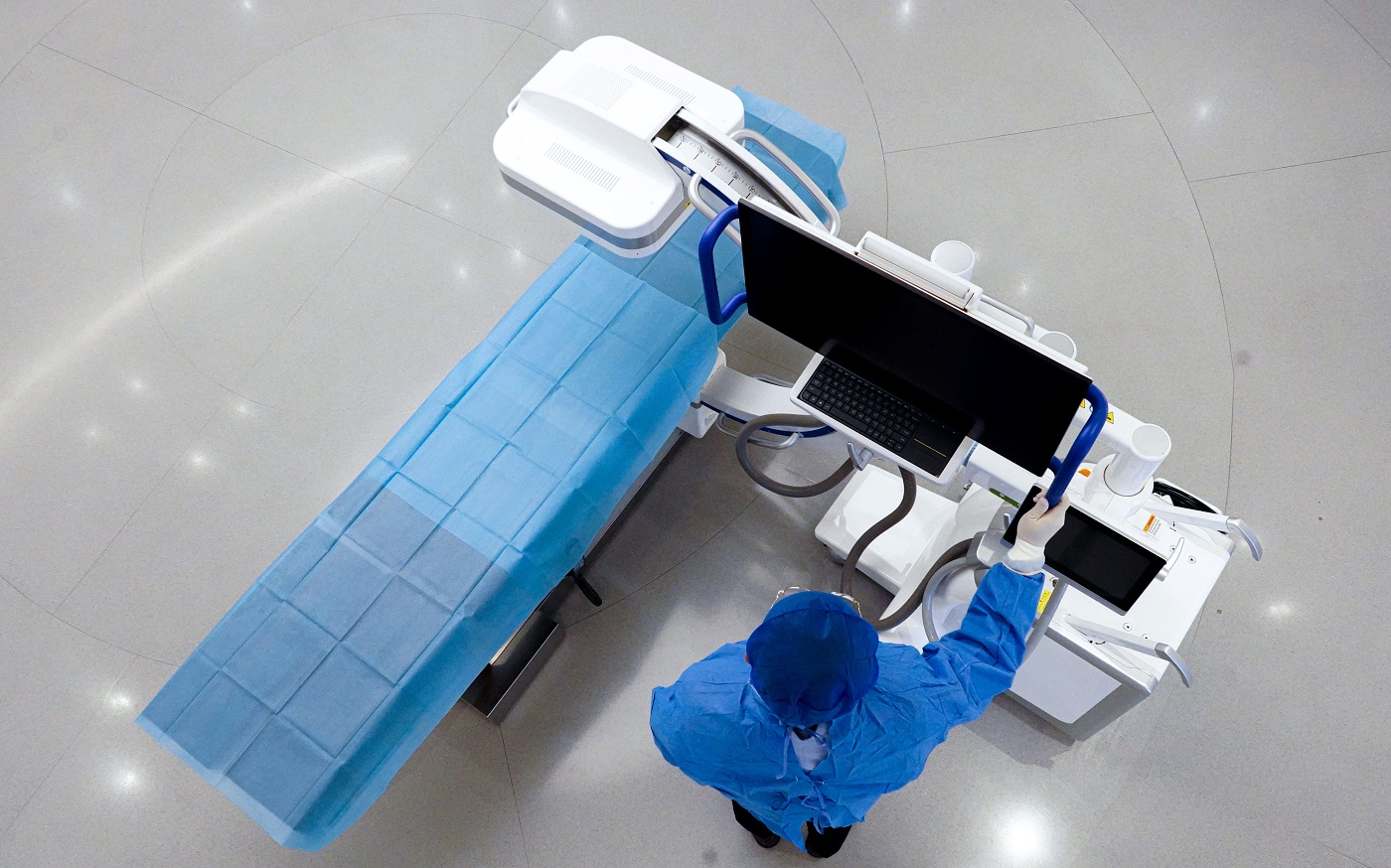 普愛醫(yī)療大平板一體式C形臂將工作站與設(shè)備主體集成在一起,設(shè)備的著地面積僅約1㎡,更加適應(yīng)基層醫(yī)院手術(shù)室空間有限、復(fù)雜擁擠的環(huán)境。