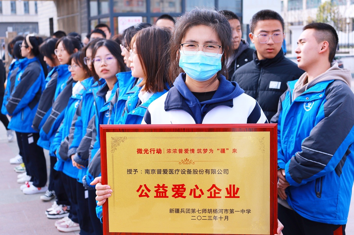 胡楊河市第一中學(xué)授予普愛醫(yī)療“公益愛心企業(yè)”稱號(hào)