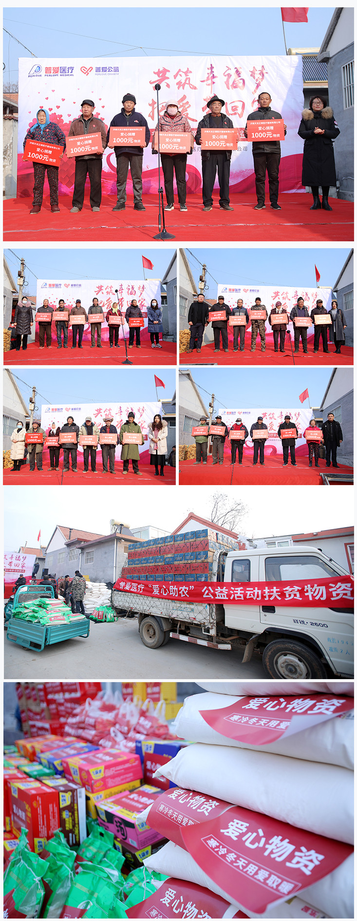 12月18日,普愛(ài)醫(yī)療攜手會(huì)員俱樂(lè)部成員在山東省萊州市柞村鎮(zhèn)大臺(tái)頭村舉辦“共筑幸福夢(mèng),把愛(ài)帶回家”社會(huì)公益助農(nóng)活動(dòng),為當(dāng)?shù)?0戶貧困家庭捐贈(zèng)生活物資,用善舉傳遞愛(ài)心,讓溫暖在寒冬延續(xù)。普愛(ài)醫(yī)療副總經(jīng)理趙政文先生、會(huì)員俱樂(lè)部成員代表、柞村鎮(zhèn)大臺(tái)頭村村委書記王京成先生出席了本次活動(dòng)。萊州市電視臺(tái)及萊州日?qǐng)?bào)等媒體對(duì)本次“愛(ài)心助農(nóng)”公益活動(dòng)進(jìn)行了現(xiàn)場(chǎng)采訪報(bào)道。