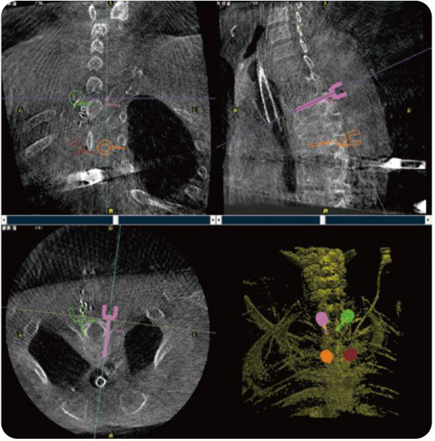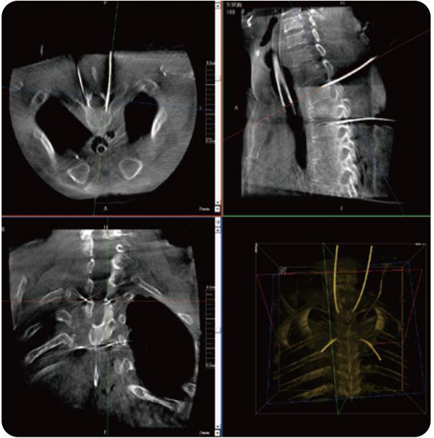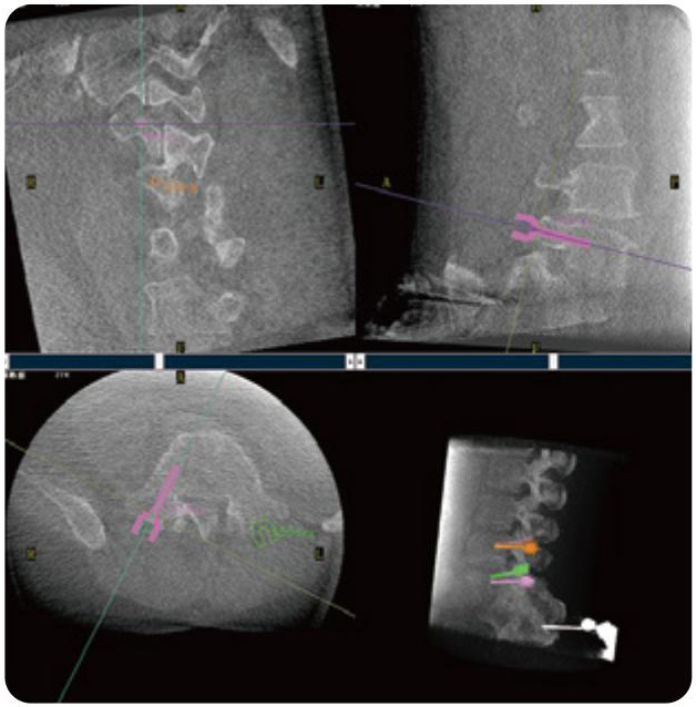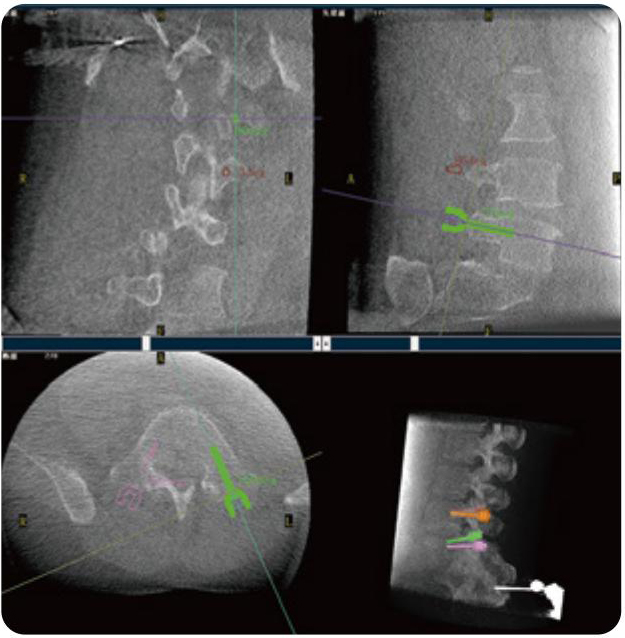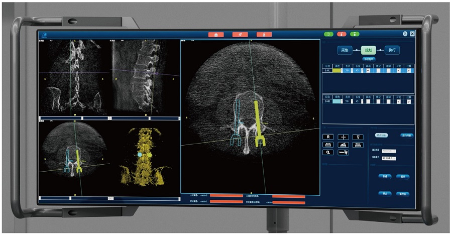 PL300B可應用于多節(jié)段脊柱外科手術,輔助醫(yī)生定位病灶部位,為脊柱外科手術(經(jīng)皮椎體成形術、椎弓根螺釘內固定術等術式)提供術前手術流程規(guī)劃、入釘位置、角度可視化引導,模擬仿真入釘輔助。